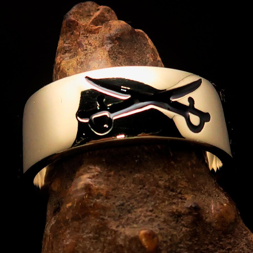 Solid Brass Men's Cavalry Ring Crossed Sabers high polished with Black Enamel.