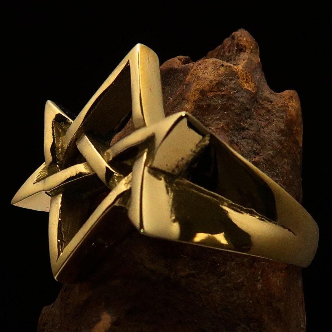 Solid Brass Men's Aquarian Star Ring. The Ring is mirror polished