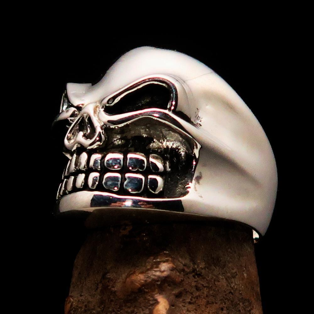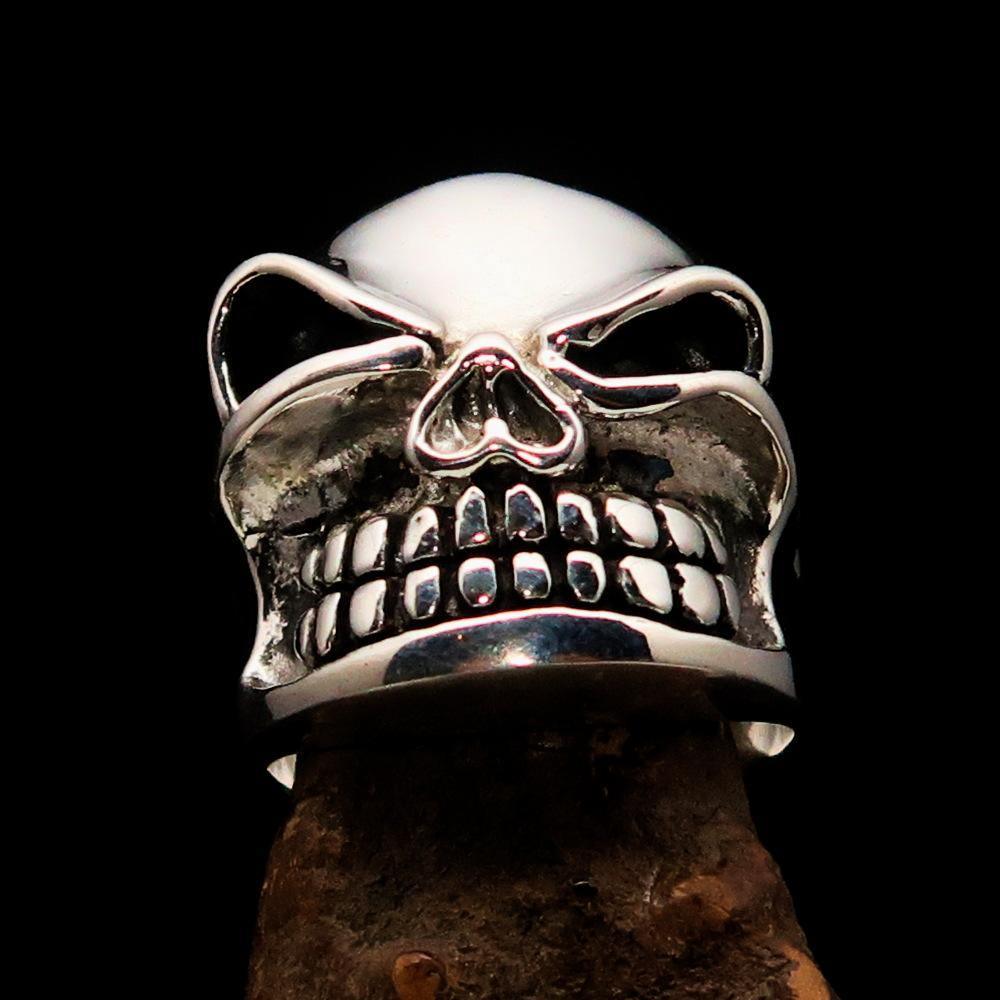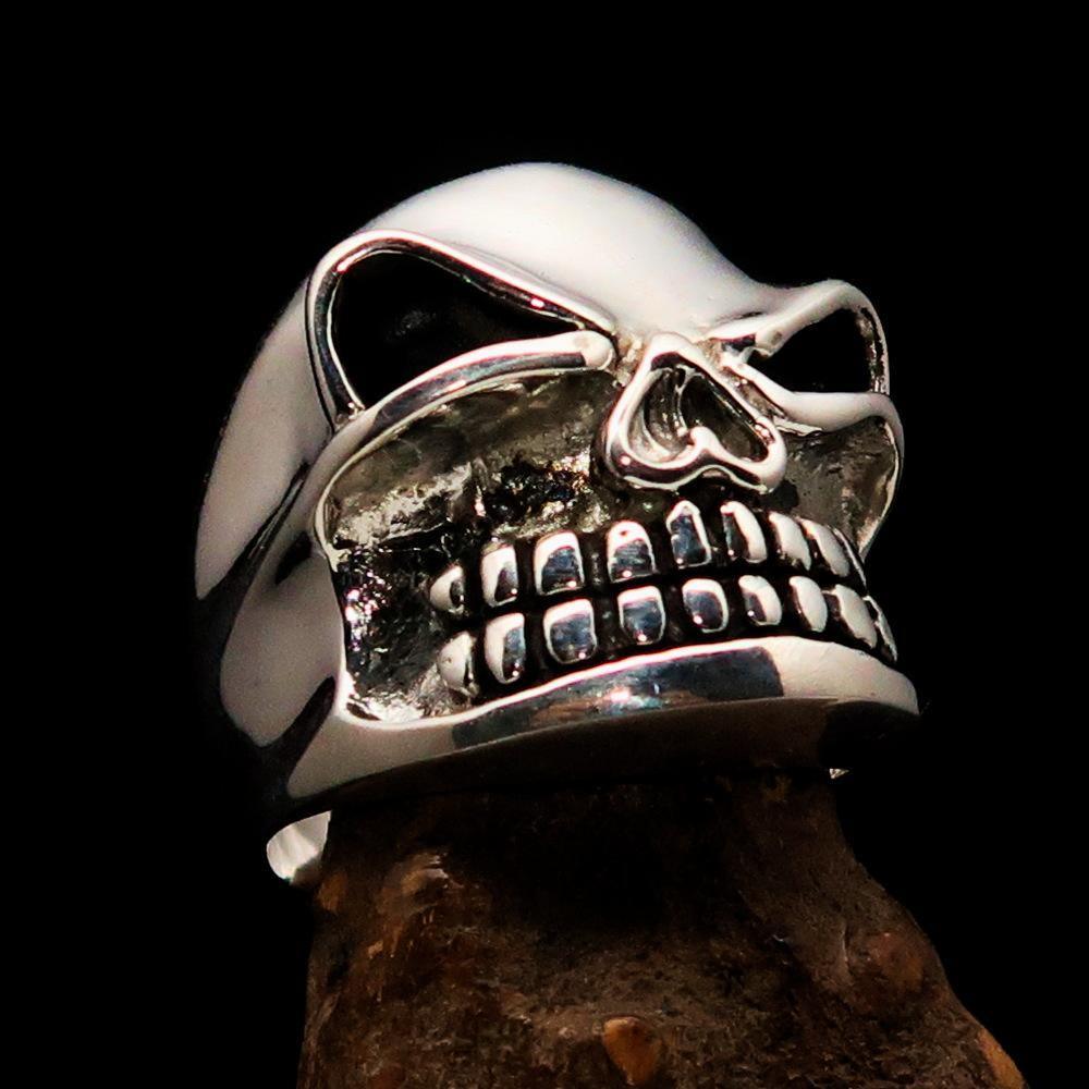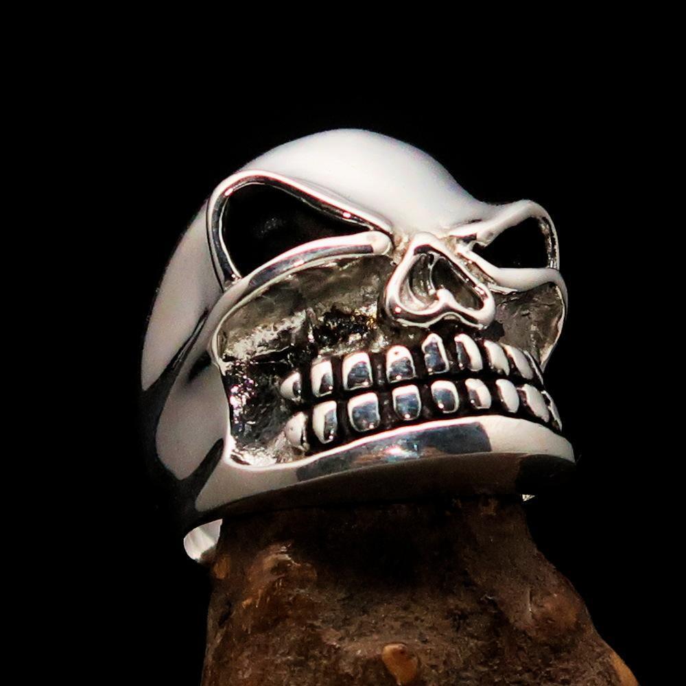 This Excellent crafted Men's Biker Ring winking Gnome Skull is a must-have for any biker or skull enthusiast. Made from solid Sterling Silver, this ring is not only durable but also stylish. The high polished and antiqued finish adds a unique touch to the design, making it stand out from other biker rings.
