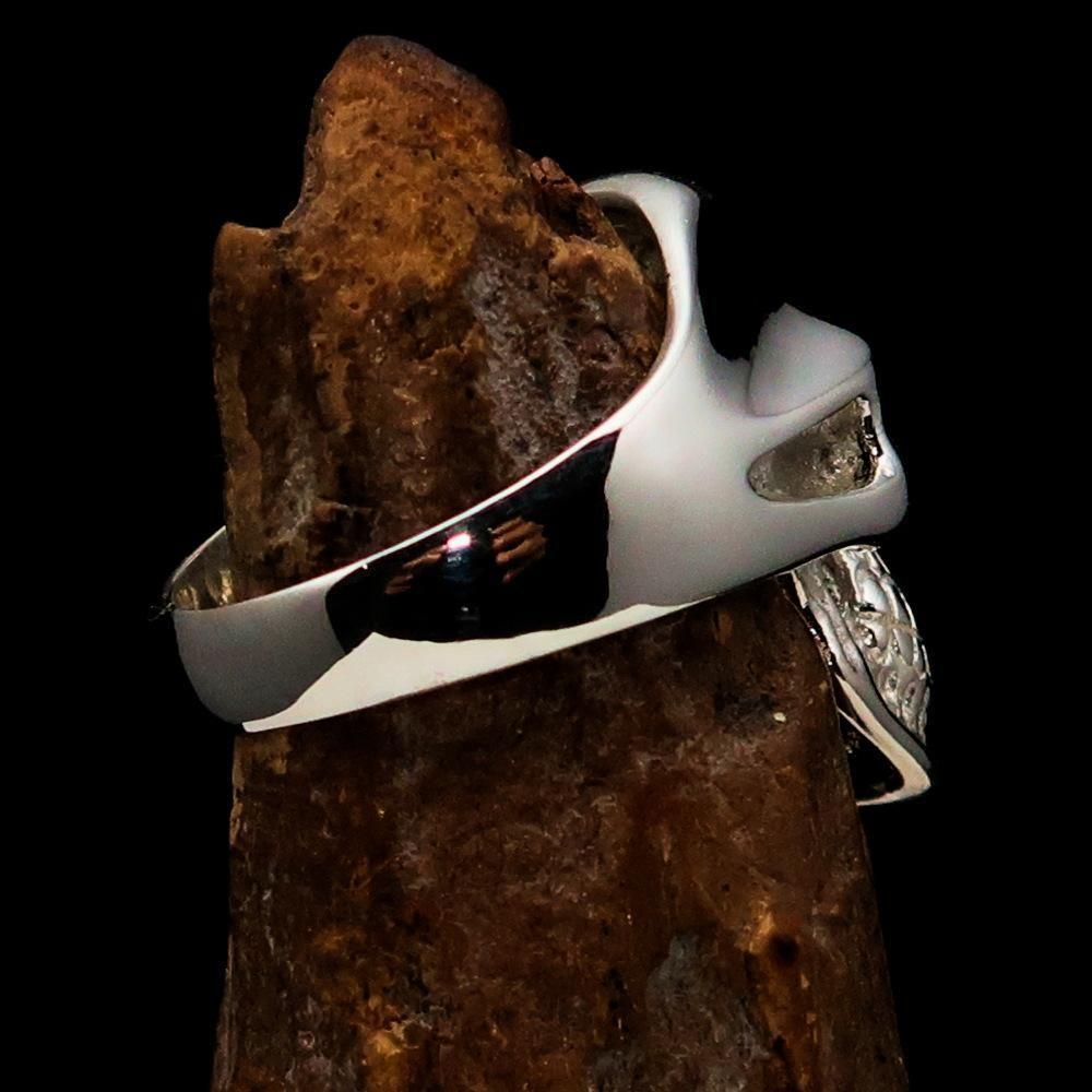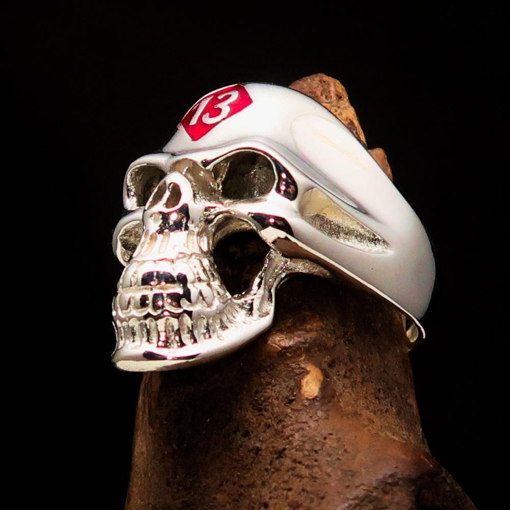Expertly crafted Men's Biker Skull Ring Red Diamond Enamel Lucky 13 - Sterling Silver 925