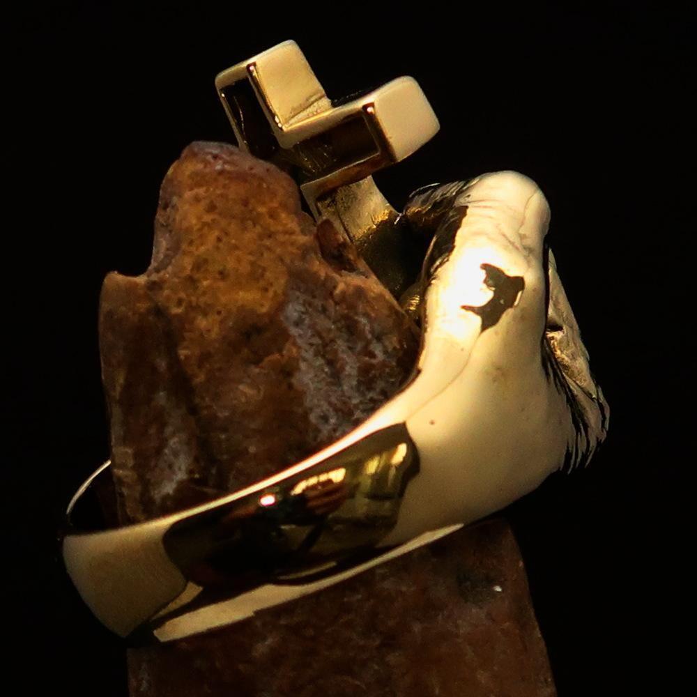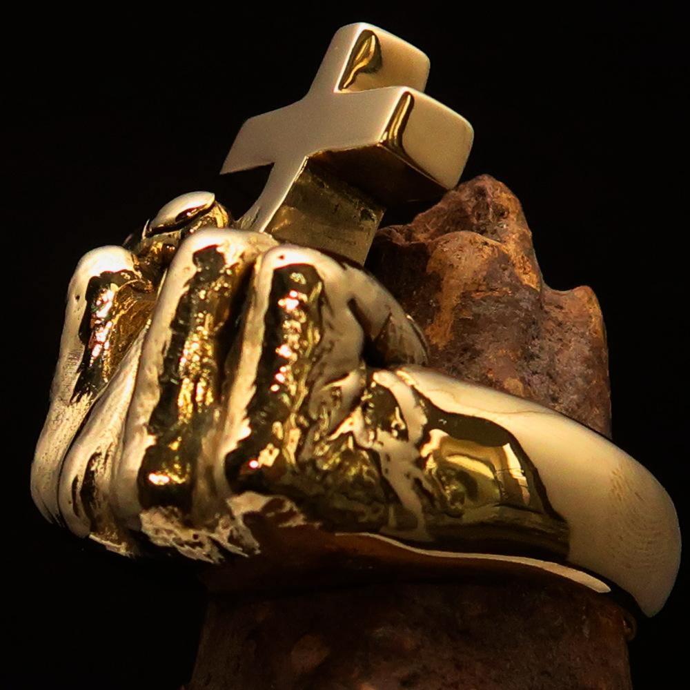 Men's Brass Atheist Ring Fist Middle Finger Cross