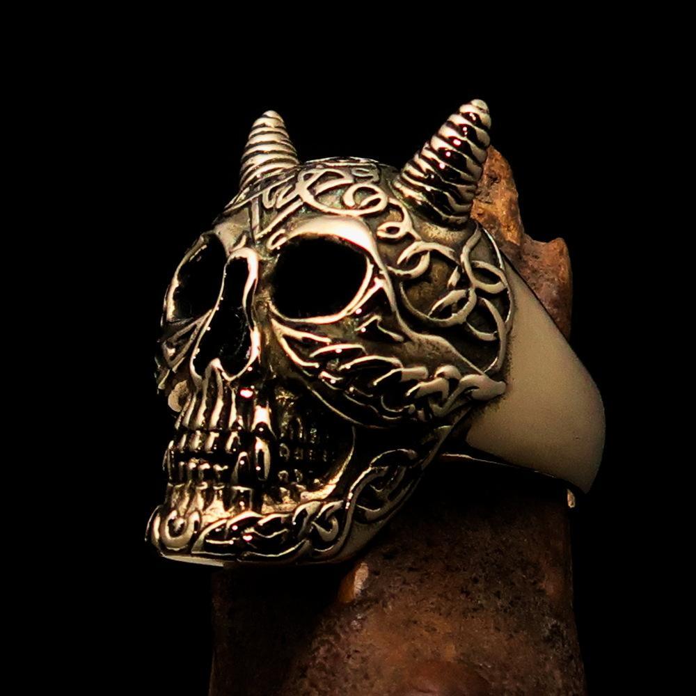 Stunning Men's Brass Devil Biker Ring Celtic Runes Skull