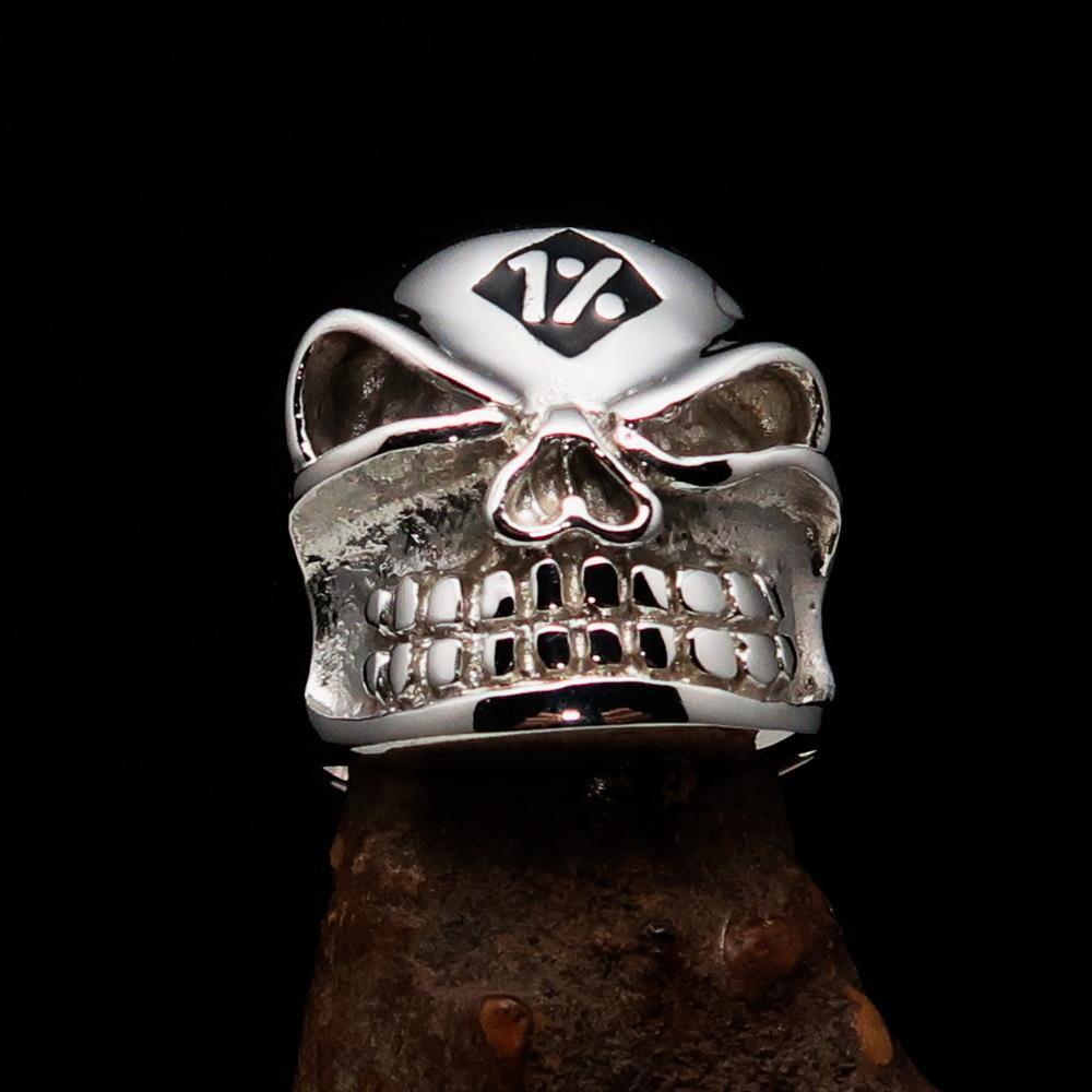 Solid Sterling Silver Men's one Percenter Gnome Skull Ring. High polished with Black Enamel. The Ring is hallmarked 925