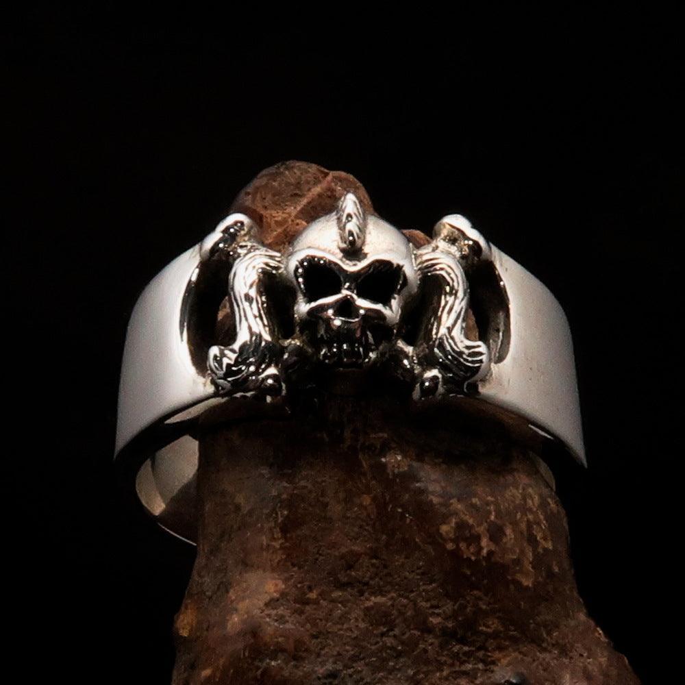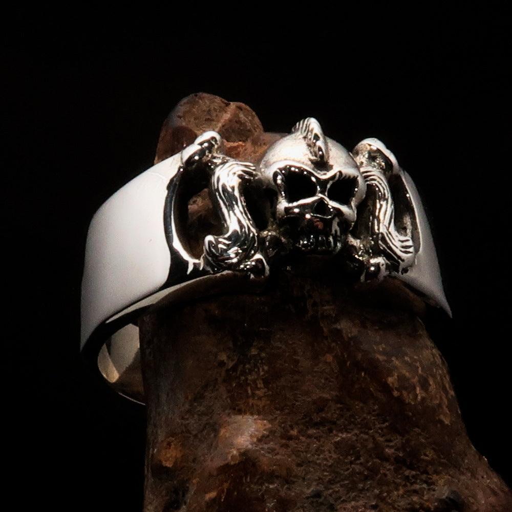 Pony Tail Girly Skull Ring - antiqued Sterling Silver 925