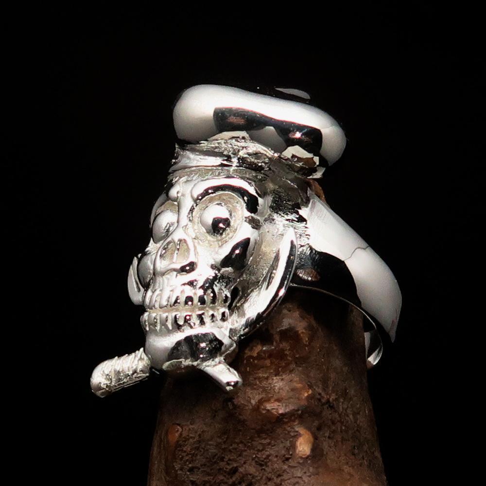 Solid Sterling Silver Men's Chef Skull Ring Crossed Knife and Fork. The Ring is mirror polished and hallmarked 925