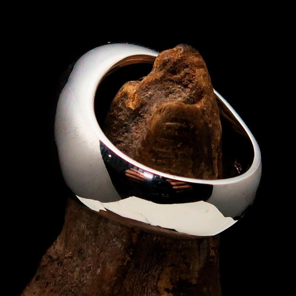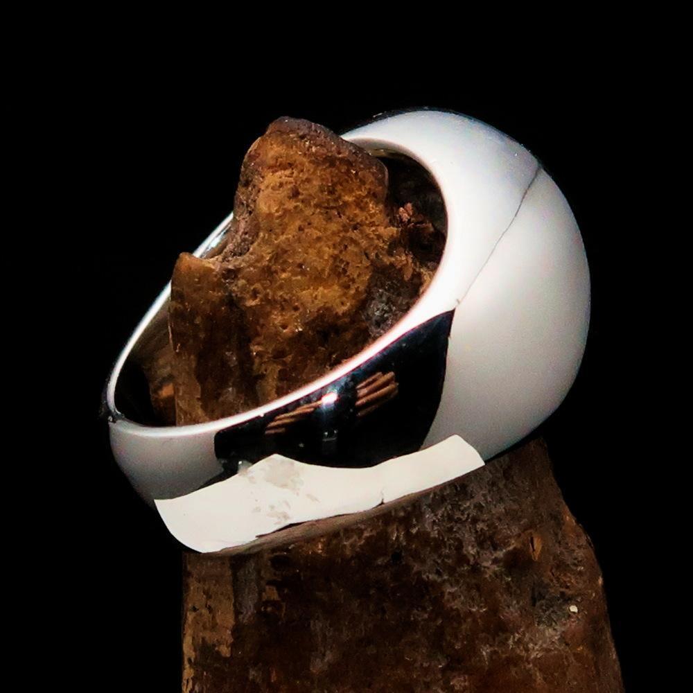 Expertly crafted Domed Men's Buddhist Ring red Aum Symbol - Sterling Silver 925
