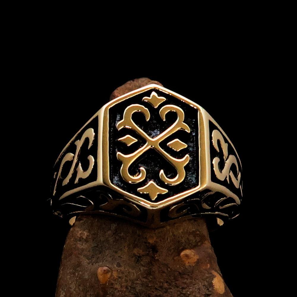 Expertly crafted Men's Celtic Crest Ring Antiqued - Brass