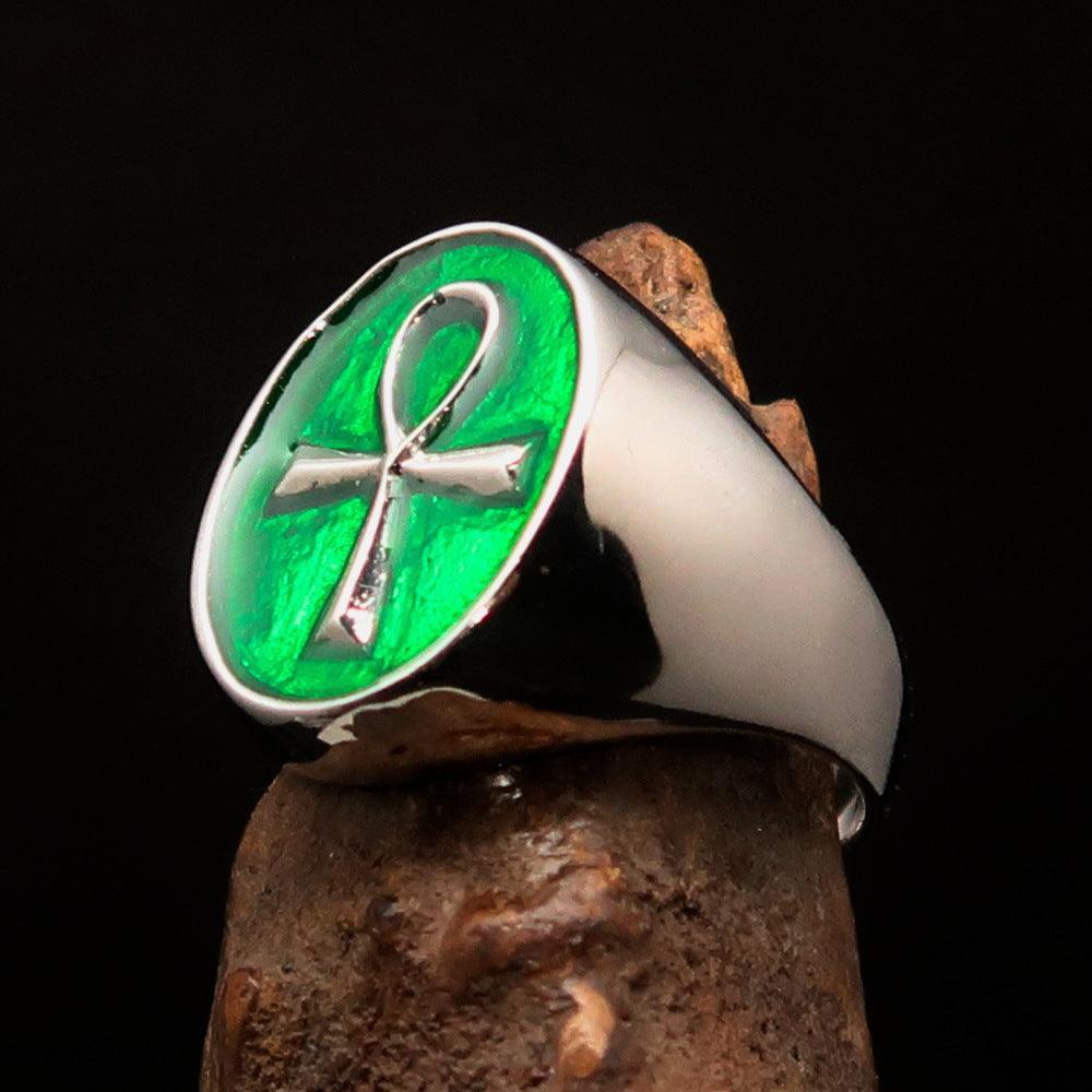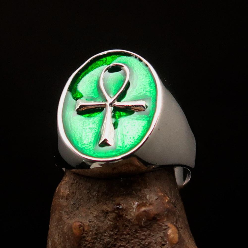 Add this Green oval shaped Egyptian Ankh Cross Men's Ring to your collection today and step out in style