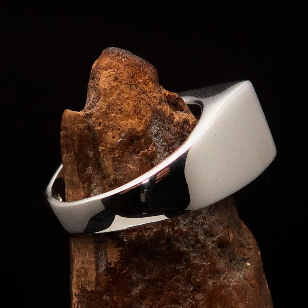 With dimensions of 12 mm along the finger and 21 mm wide, this ring is designed to make a statement. Its bold and eye-catching appearance is perfect for those who appreciate unique and symbolic jewelry. Whether you choose to wear it as a pinky ring or on any other finger, it is sure to draw attention and spark conversations.