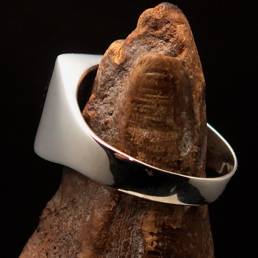 With dimensions of 14mm along the finger and 17mm wide, this ring is bold yet comfortable to wear. Available in all sizes, including custom sizes, you can easily find the perfect fit for your finger. Each ring is hallmarked 925, ensuring its authenticity and quality.
