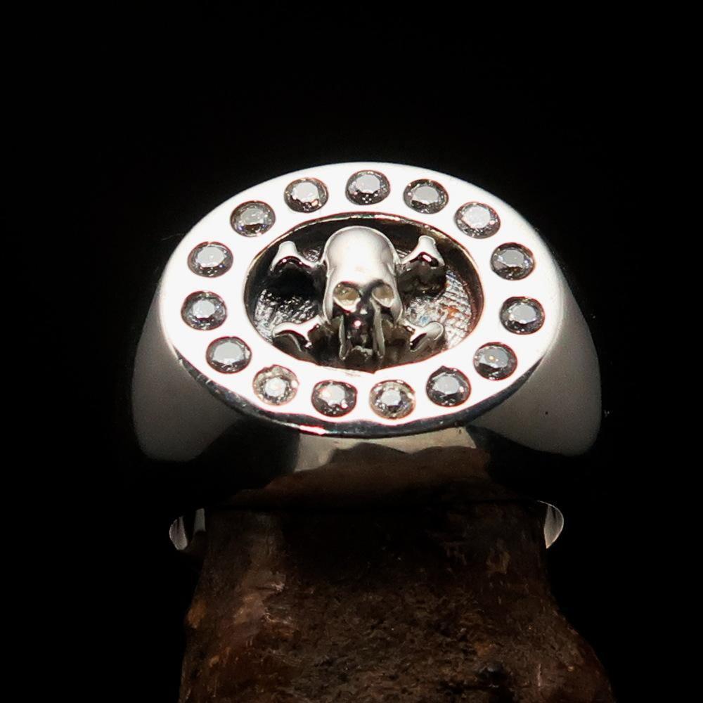 Men's Alien Skull Ring surrounded with 15 white CZ - Sterling Silver 925