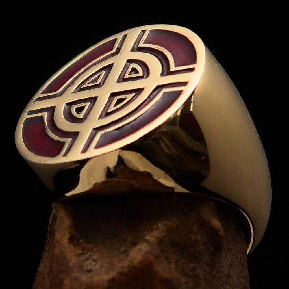 Men's Biker Ring Celtic Cross Red - Solid Brass