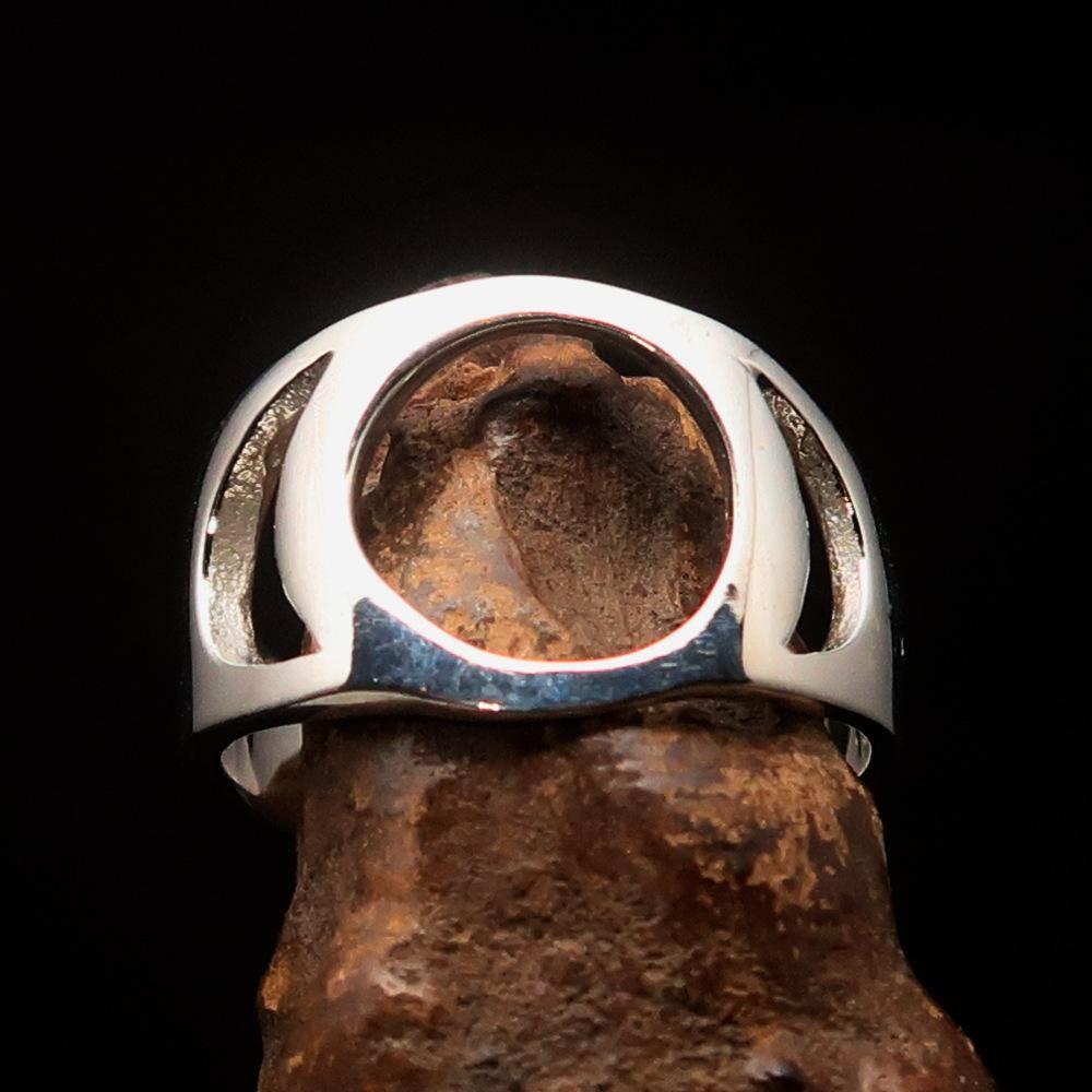 Solid Sterling Silver Men's Greek Initial Ring Letter Omicron high polished. The Ring is hallmarked 925.