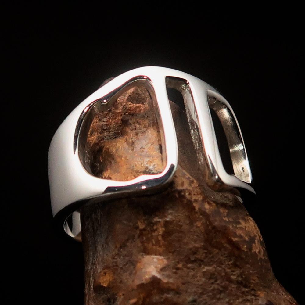 Solid Sterling Silver Men's Greek Initial Ring Letter Pi high polished. The Ring is hallmarked 925.