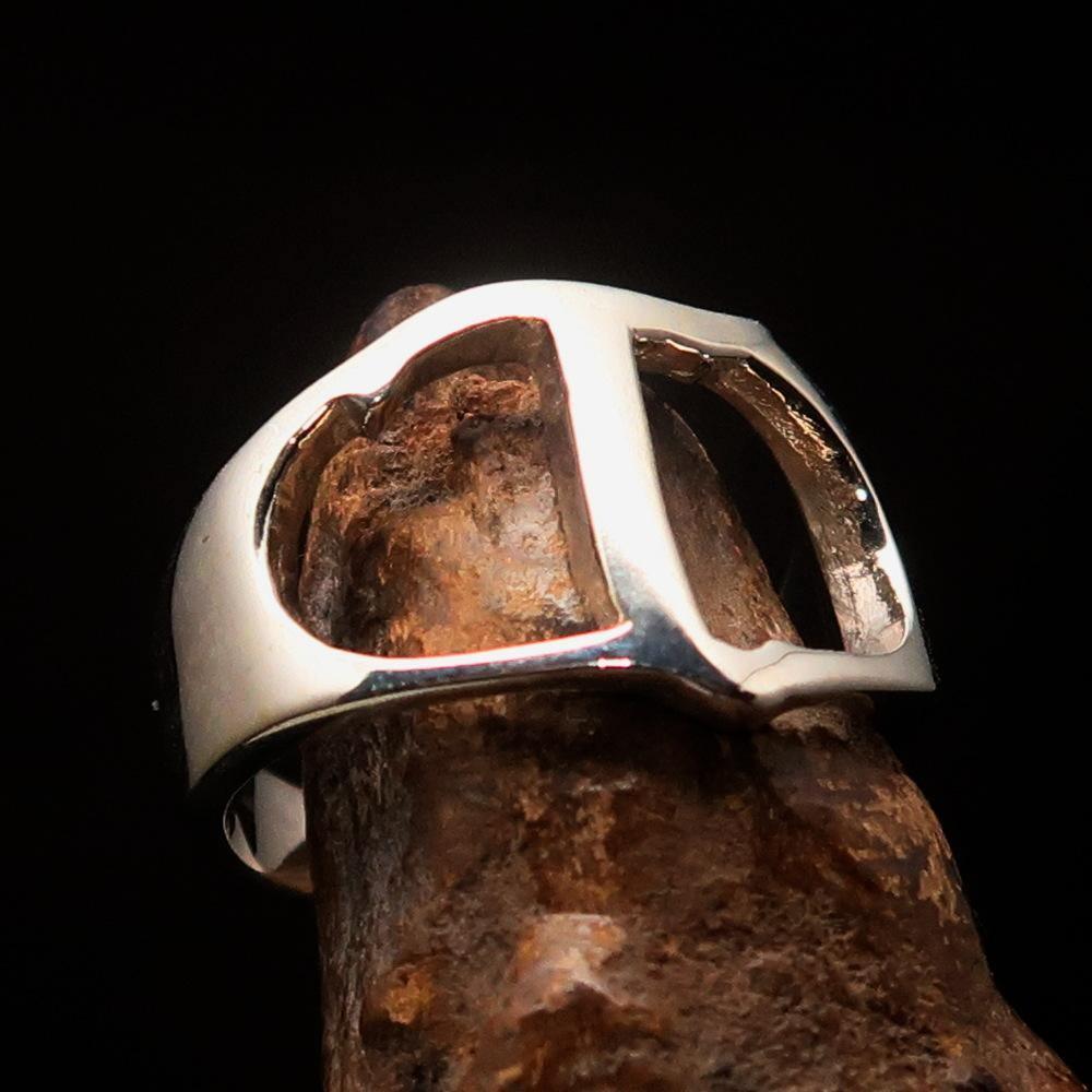 Solid Sterling Silver Men's Greek Initial Ring Letter Tau high polished. The Ring is hallmarked 925.
