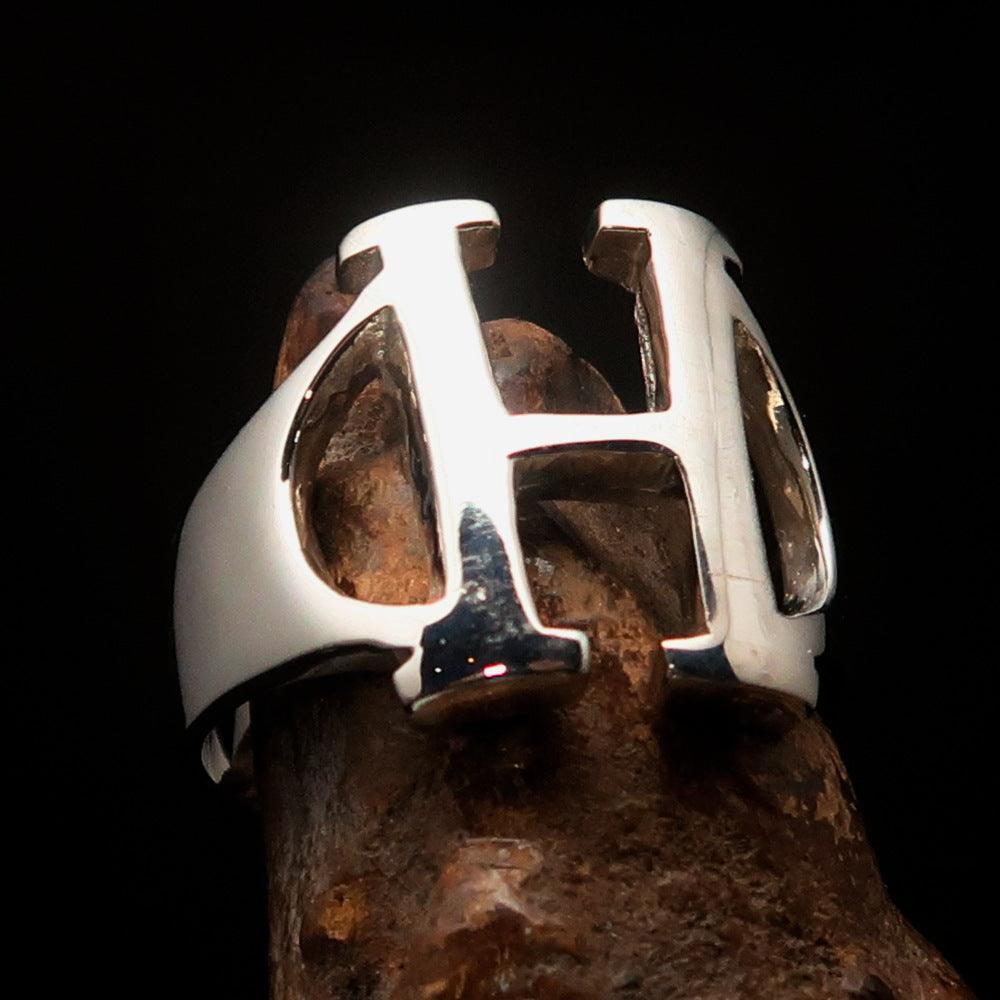 Solid Sterling Silver Men's Greek Initial Ring Capital Letter Eta high polished. The Ring is hallmarked 925.