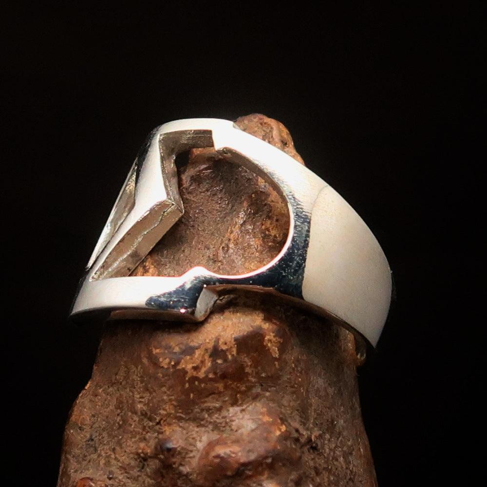 Solid Sterling Silver Men's Greek Initial Ring Capital Letter Sigma high polished. The Ring is hallmarked 925.