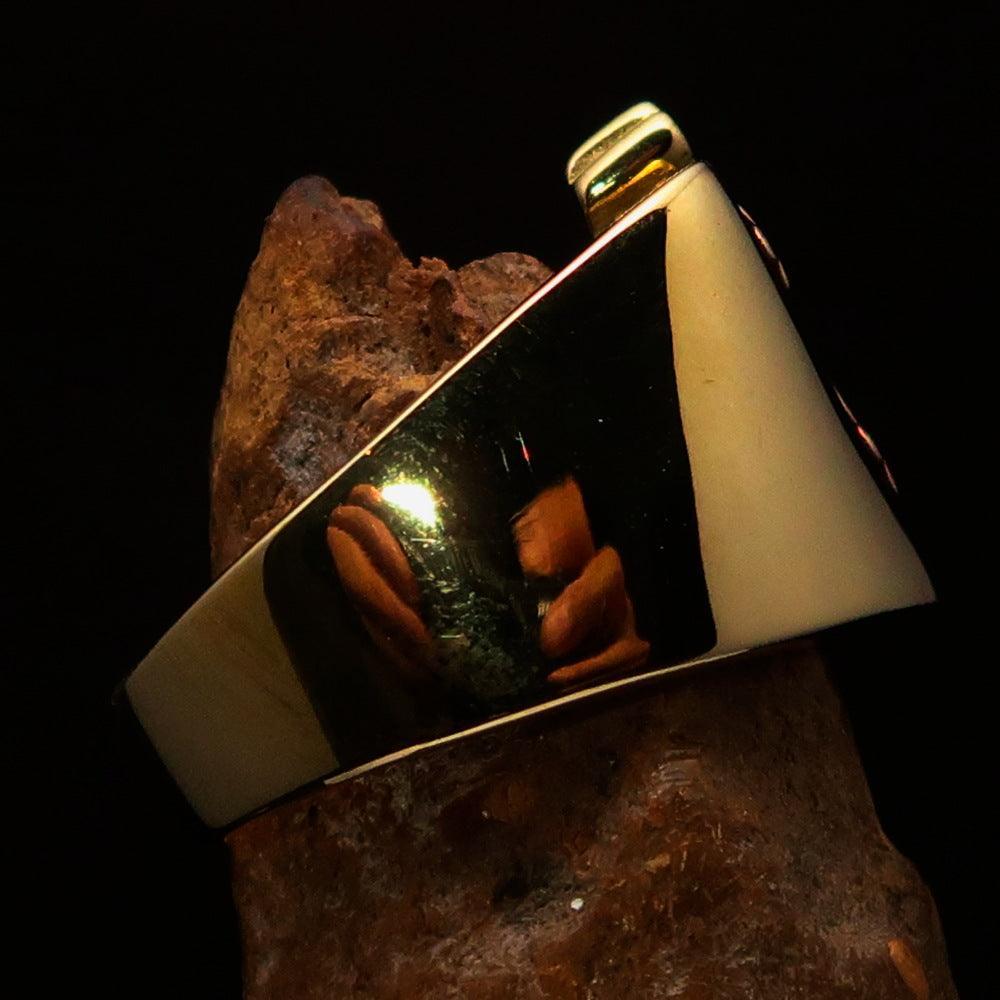 Men's red Coptic Rose Cross Ring - Solid Brass