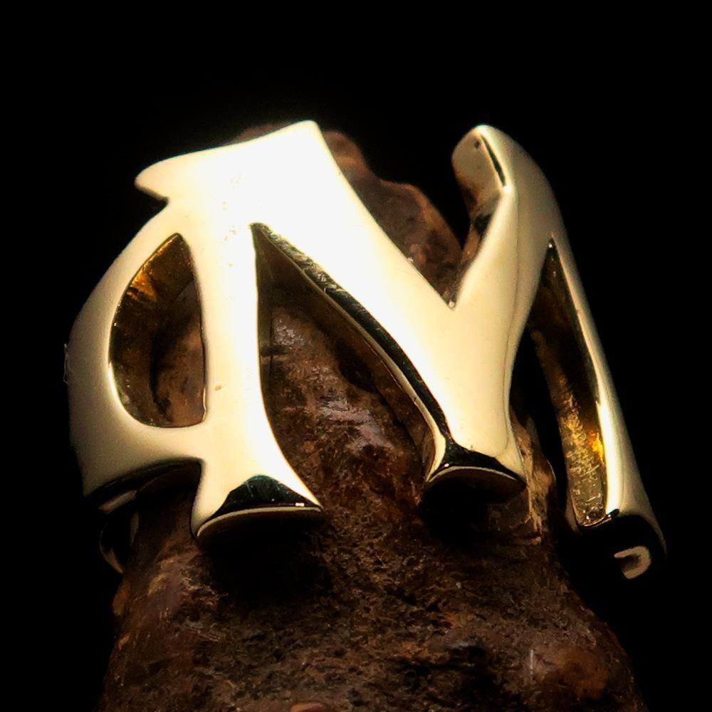 Mirror polished Men's Brass Initial Ring one bold Letter M