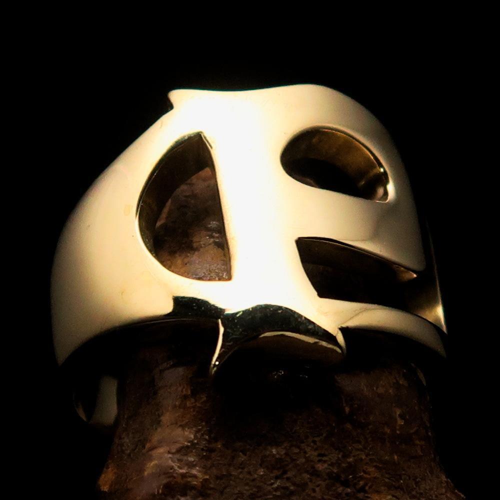 Mirror polished Men's Brass Initial Ring one bold Letter P