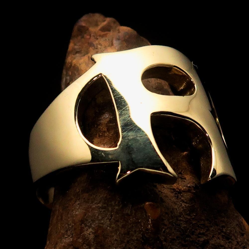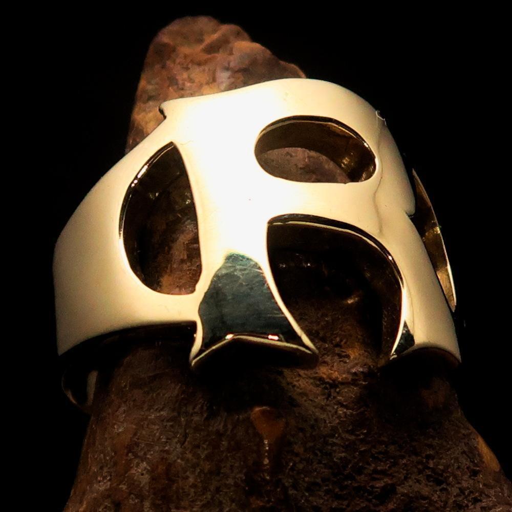 Mirror polished Men's Brass Initial Ring one bold Letter R