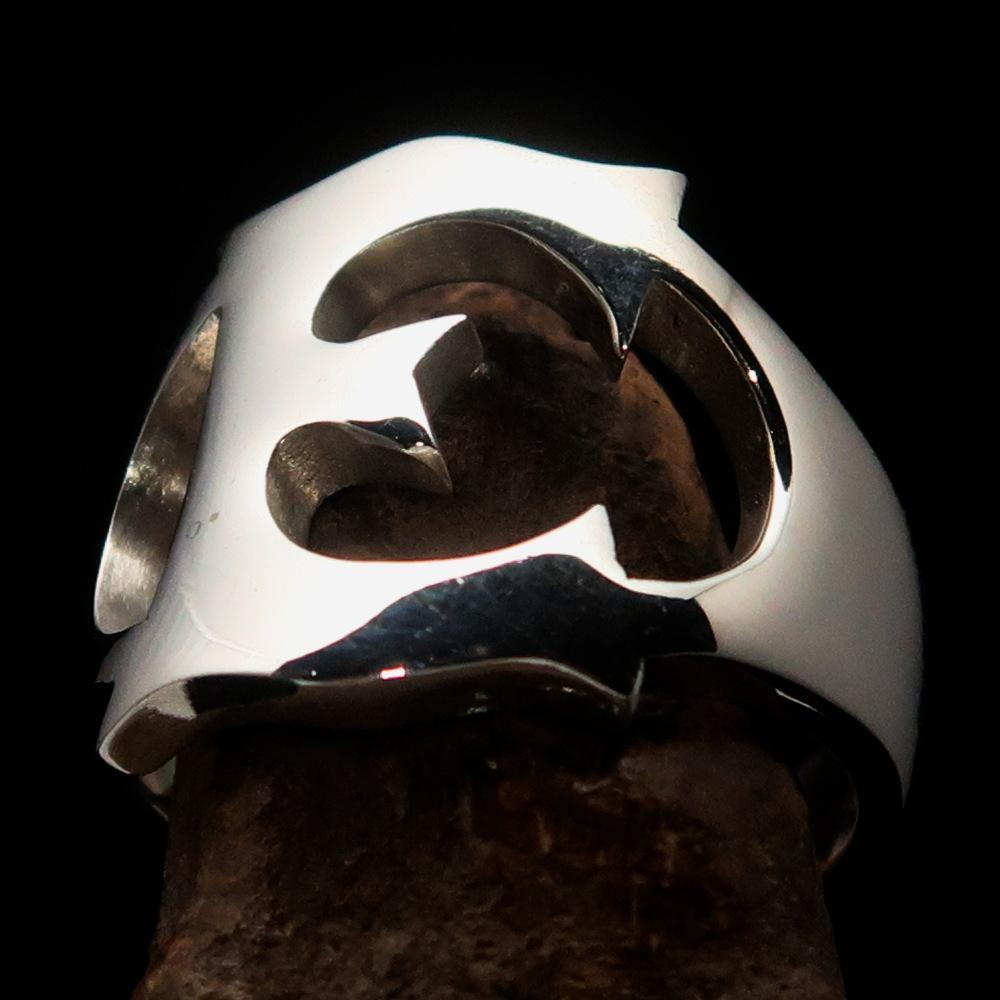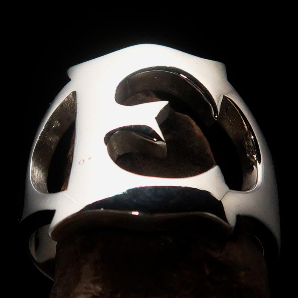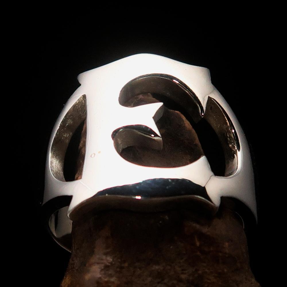 Mirror polished Men's Sterling Silver Initial Ring one bold Letter E