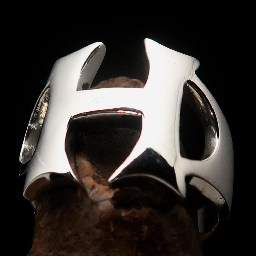 Mirror polished Men's Sterling Silver Initial Ring one bold Letter H