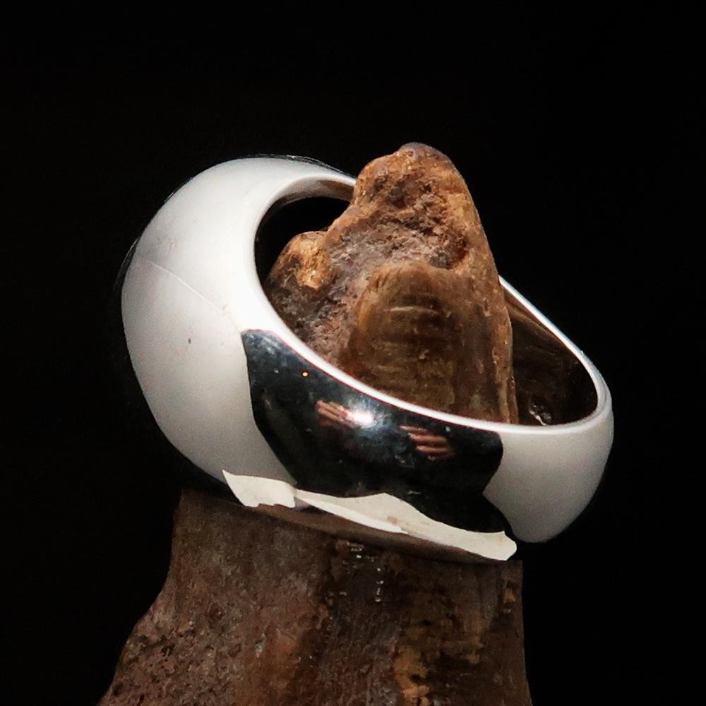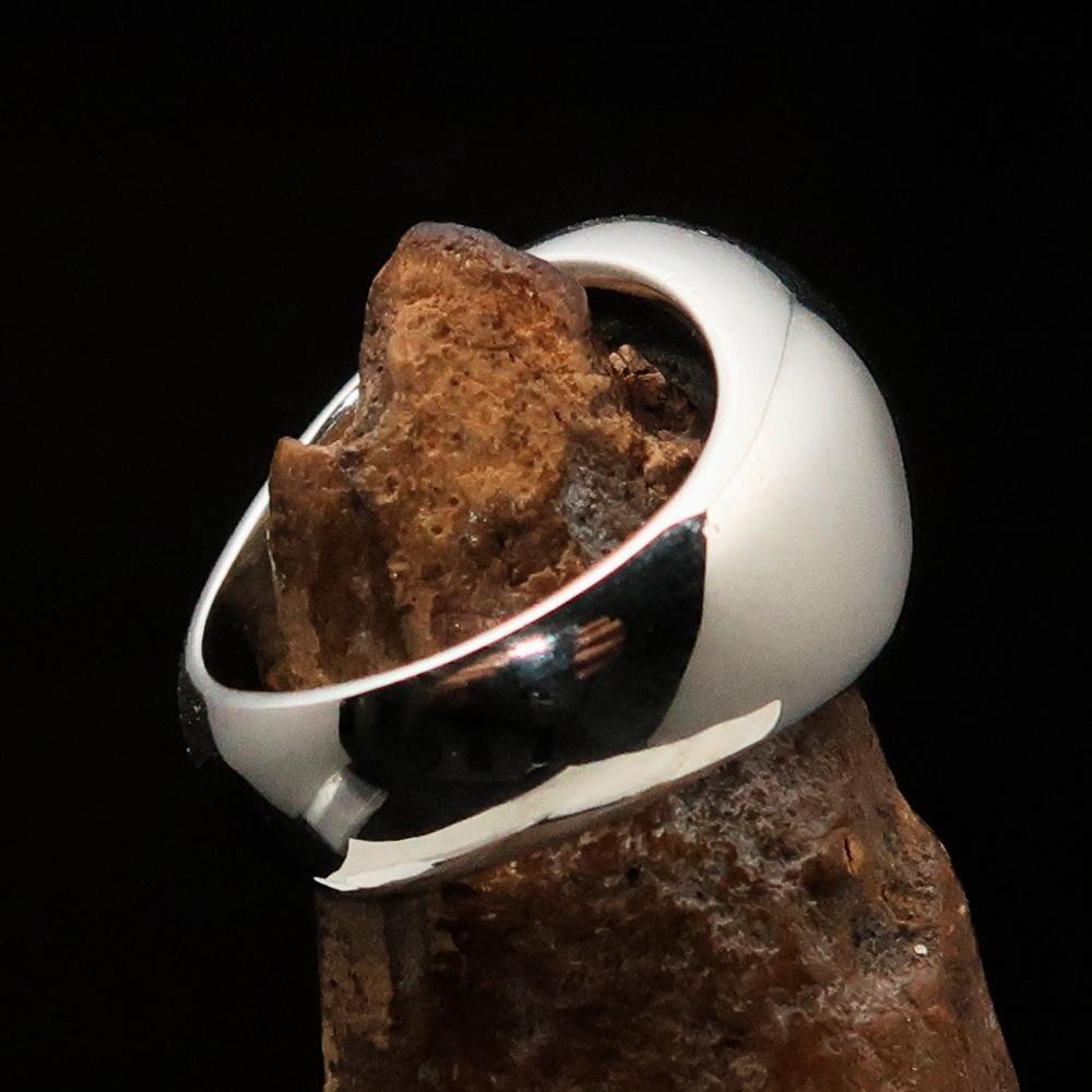 Nicely crafted domed Men's Buddhist Ring Black Aum Symbol - Sterling Silver