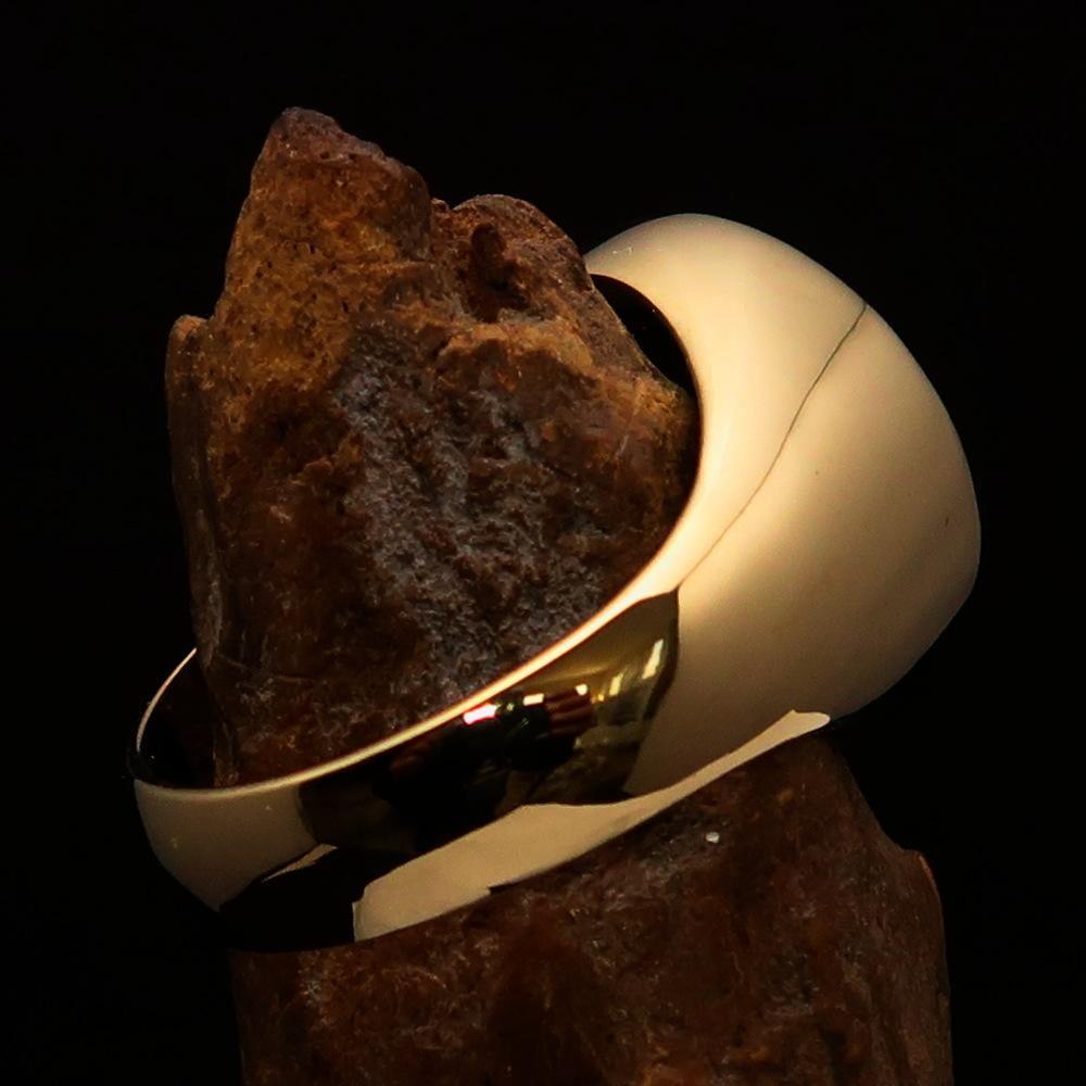 This Solid Brass Men's Viking Runes Ring is a beautifully designed piece of jewelry that combines ancient Viking symbols with modern style. The ring is high polished with black enamel, giving it a sleek and sophisticated look.
