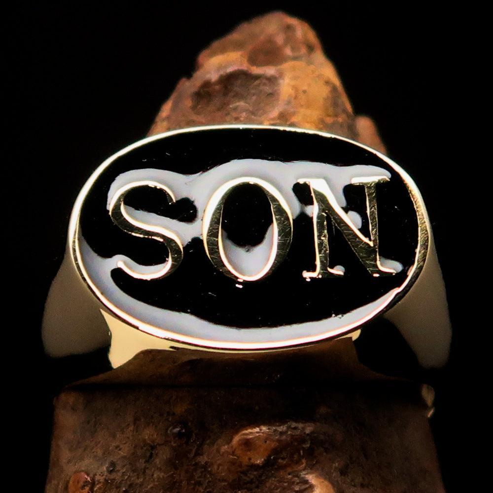 Oval Initial Men's Pinky Ring black SON one word - Solid Brass