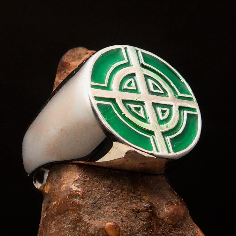 Perfectly crafted Men's Biker Ring Celtic Cross Green - Sterling Silver