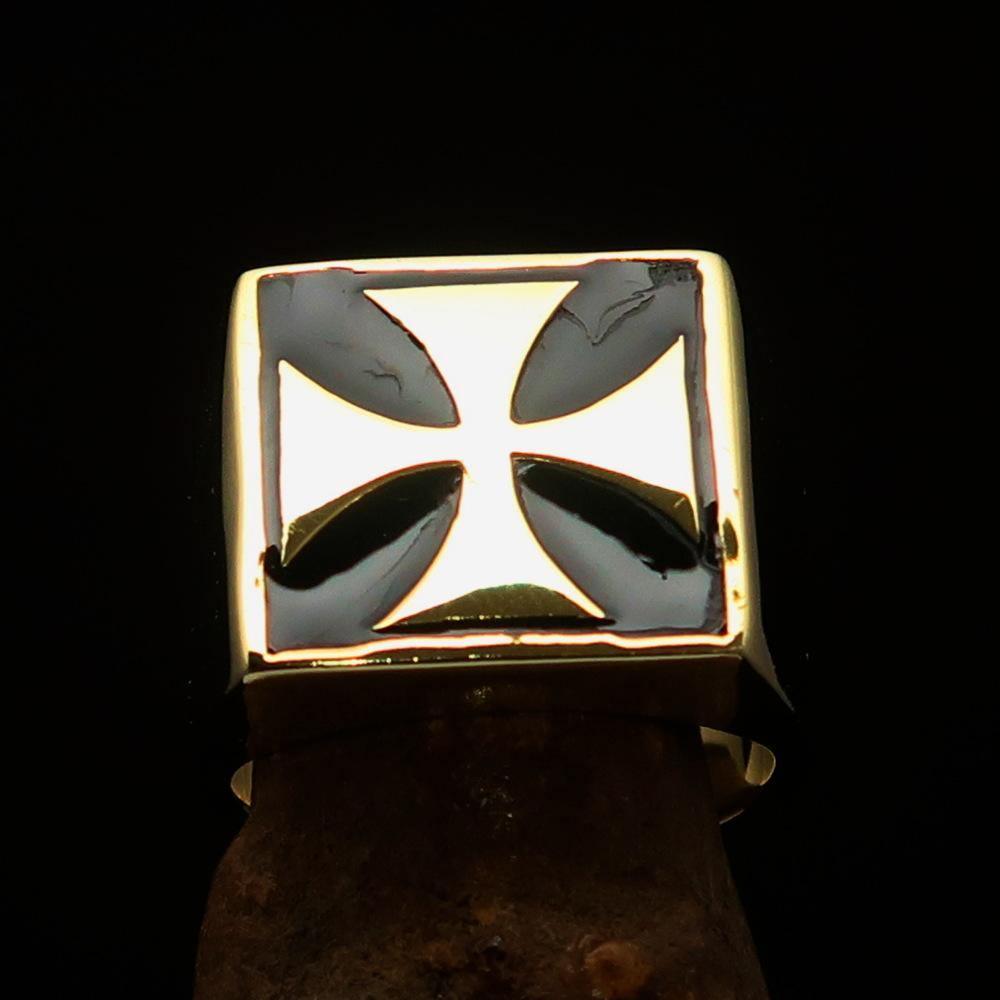 Introducing the Perfectly Crafted Men's Biker Ring Iron Cross Black - Solid Brass, available now at skullringshop. Made from high-quality solid brass, this biker ring features a sleek black enamel finish and a bold iron cross design. With dimensions of 18mm along the finger and 18mm wide, this ring is sure to make a statement.
