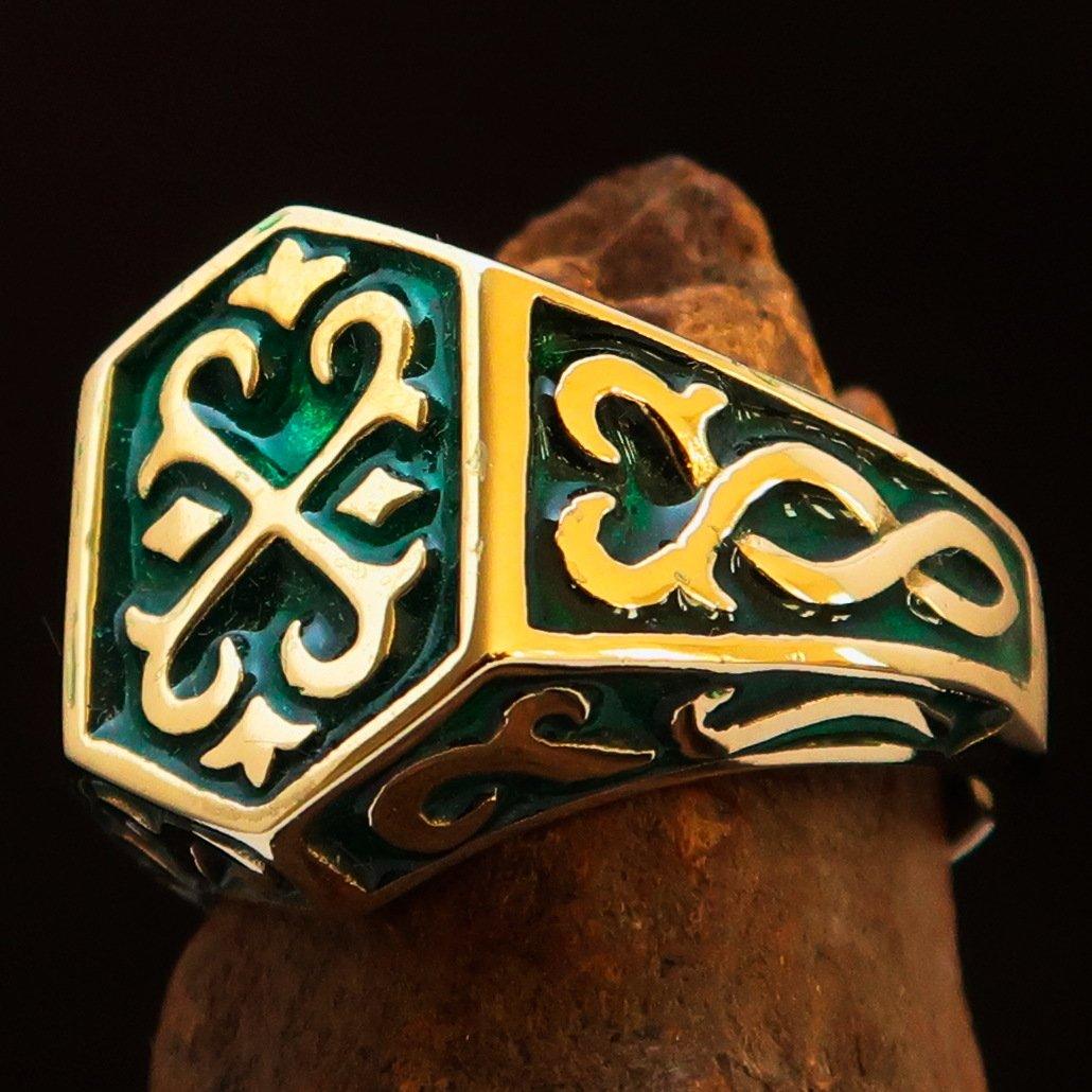 Perfectly crafted Men's Celtic Crest Ring Green Enamel - Brass