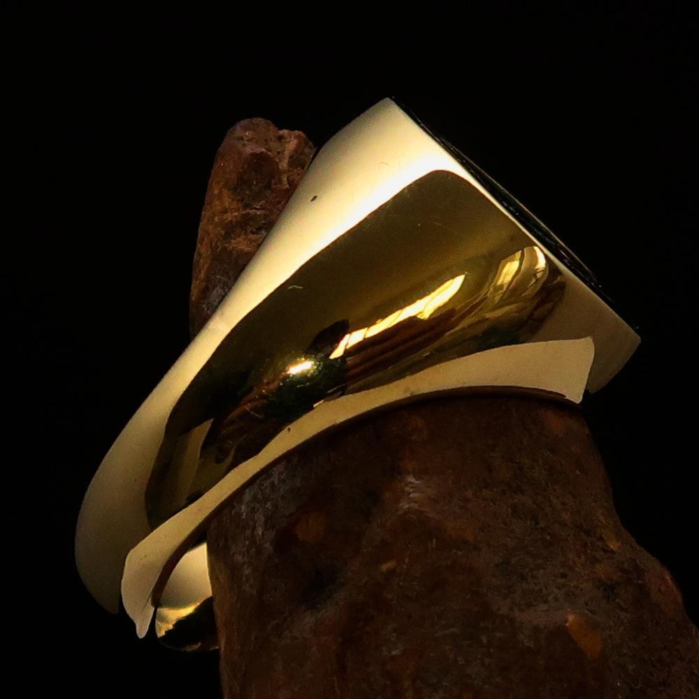 Perfectly Crafted Men's Celtic Triade Ring Green Triskele - Solid Brass, a truly innovative piece of jewelry that combines traditional Celtic design with modern craftsmanship. Made from high-quality solid brass, this ring features a stunning green enamel finish that adds a dash of color to the intricate triad design.