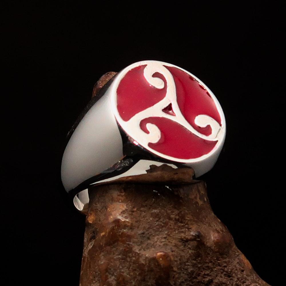 Perfectly crafted Men's Celtic Triade Ring red Triskele - Sterling Silver