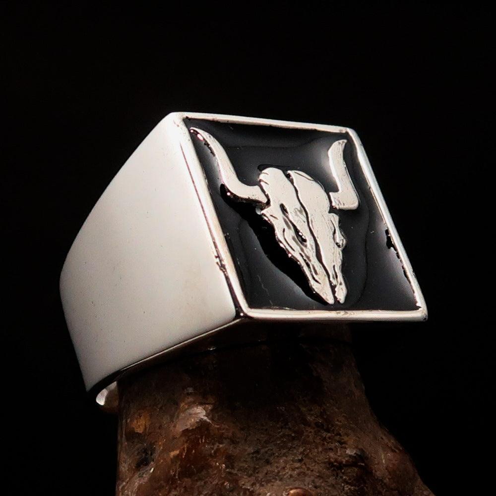 Expertly Crafted Men's Cowboy Ring black Bull Skull - Sterling Silver 925
