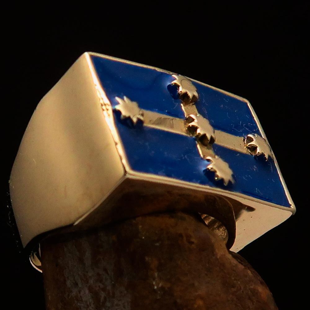 Introducing the Perfectly Crafted Men's Eureka Flag Ring Australian Rebel, made from solid brass. This ring features a high polish finish with blue enamel, giving it a sleek and stylish look.