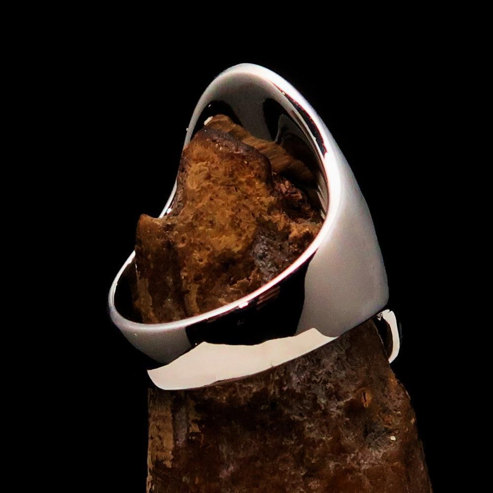 The ring is hallmarked with 925, ensuring its quality and authenticity. Measuring 31mm along the finger and 20mm wide, this ring is a bold statement piece that will add a touch of gothic style to any outfit.