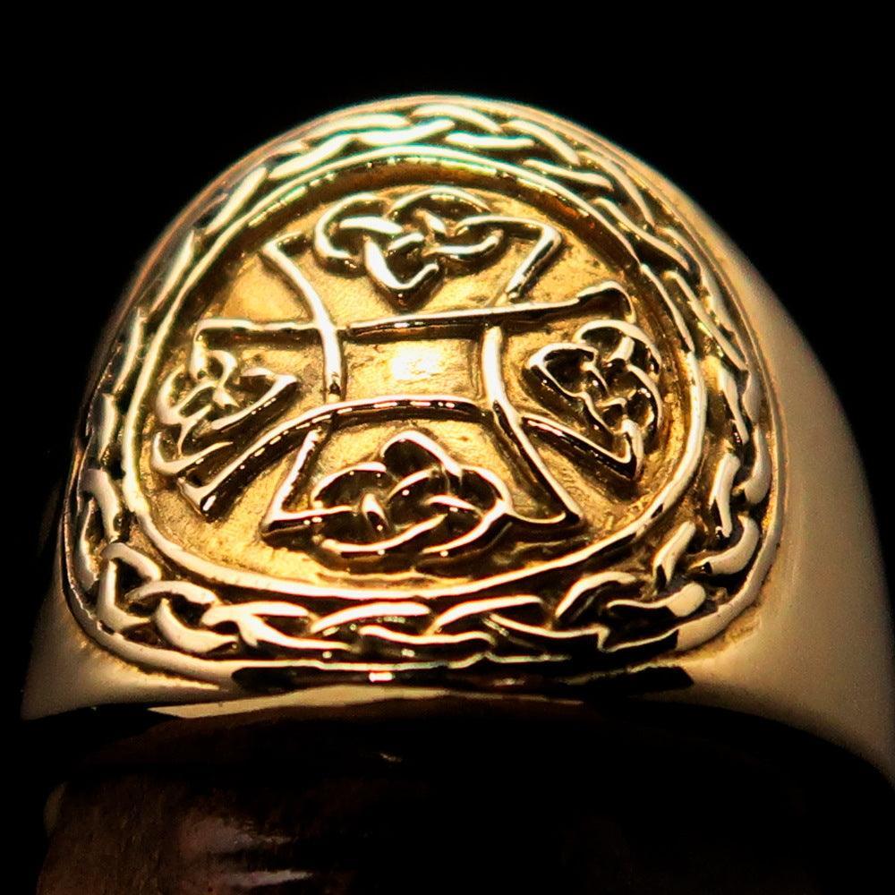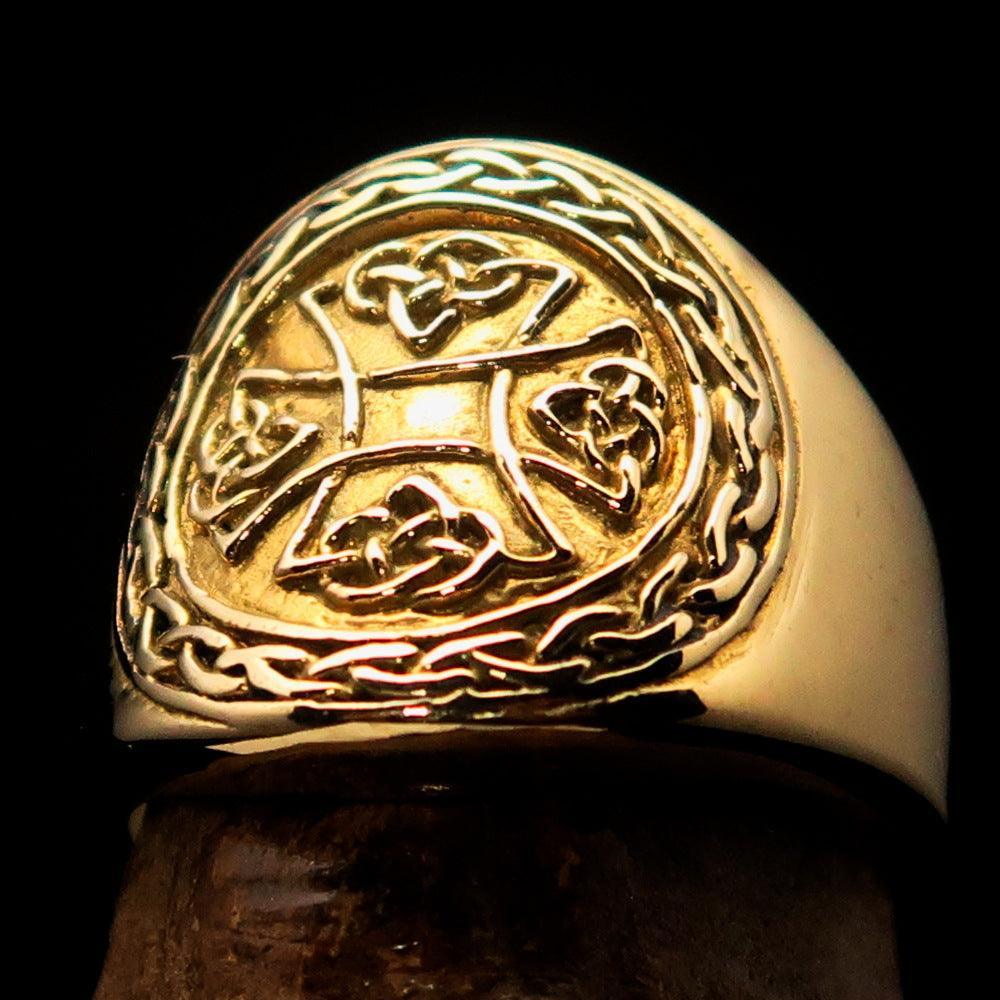 Stunning Brass Ancient Celtic Brigid's Cross Men's Pinky Ring - solid shiny Brass